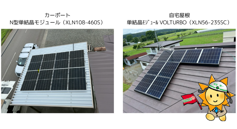カーポートにN型単結晶モジュール(XLN108-460S)を8枚